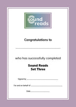 A PDF comprising 3 separate A4 certificates, to award to students to celebrate completion of Sets One, Two and Three of the SOUND READS series, for you to print off as required.